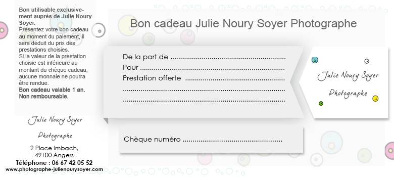 Offrez une séance photo sur-mesure en Studio, à domicile ou en extérieur